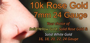 10k Solid Rose Gold Nose Ring Hoop Earring 24 Gauge 7mm Inner