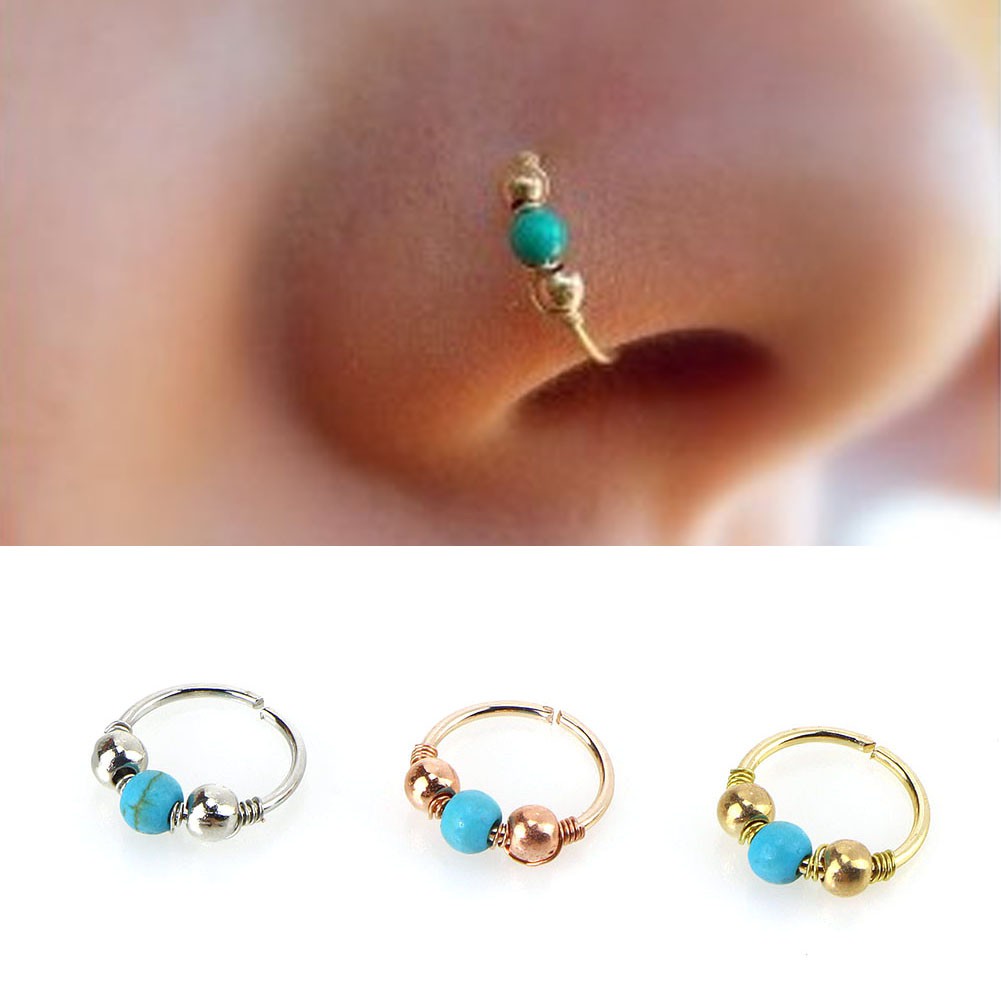 Blue Turquoise Round Beads Nose Ring Stud Earring Nostril Hoop Women Jewelry Shopee Malaysia