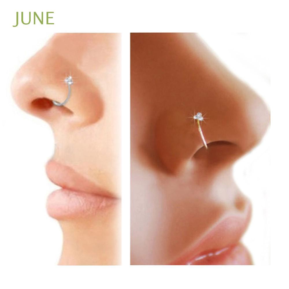 1pair Punk Jewelry Thin Silver Diamante Nose Ring Hoop Stud 3